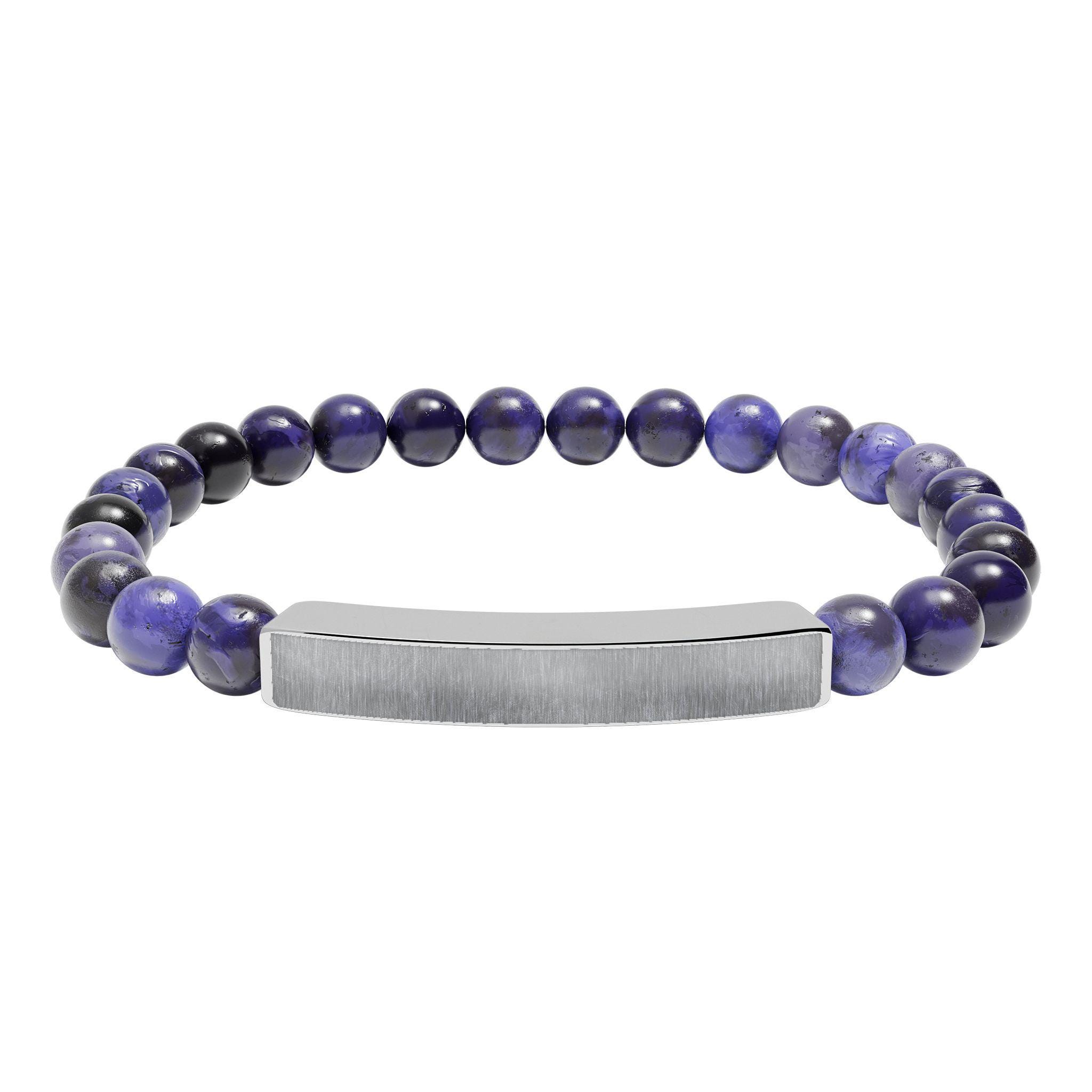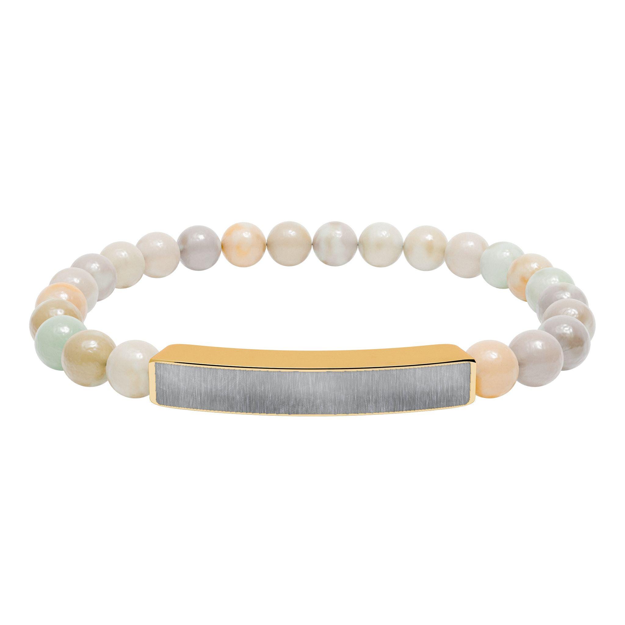 Engravable Natural Stone Bar Bracelet | Stretch Beaded Bracelet