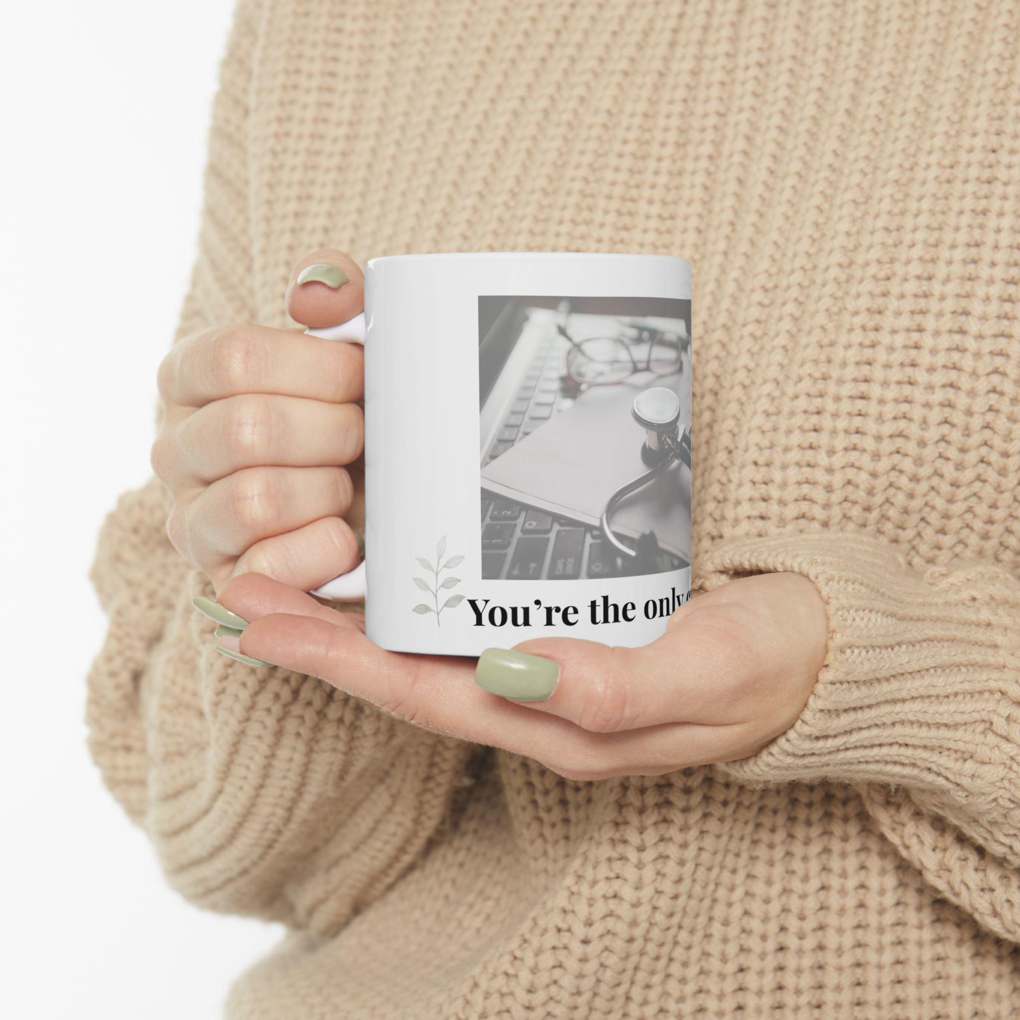 This glossy ceramic mug brings a quiet, heartfelt moment to the start of a busy day. A soft photograph of a stethoscope and notebook wraps around the mug, paired with a tender line of text along the rim — a subtle nod to care, connection, and the people who keep others well. The clean white ceramic and vivid print let the image stand out while the comfortable C-handle makes it easy to hold between shifts or during study breaks. Durable, safe, and bright — it’s a gentle companion for early mornings, late nights, and every small pause in between.